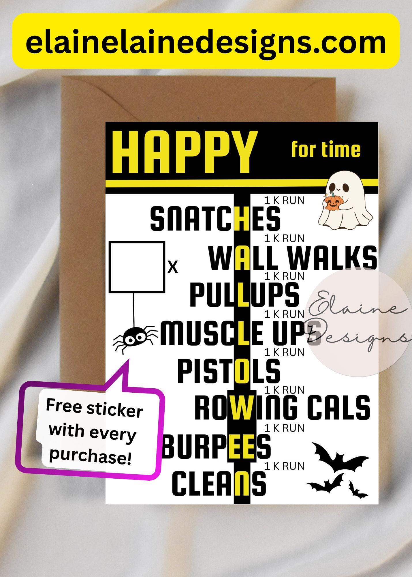 Happy Halloween WOD Card – CrossFit & Hyrox Fitness Gift | Funny Workout Greeting | Free Sticker, EED-CARDS-23