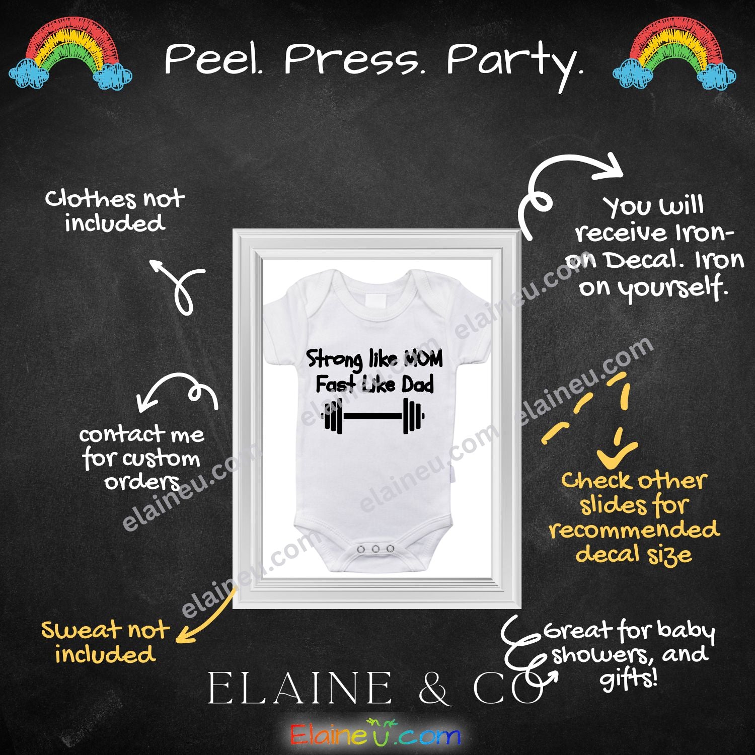 Important: This listing is for the iron-on decal only. Onesies, shirts, or other clothing are not included.