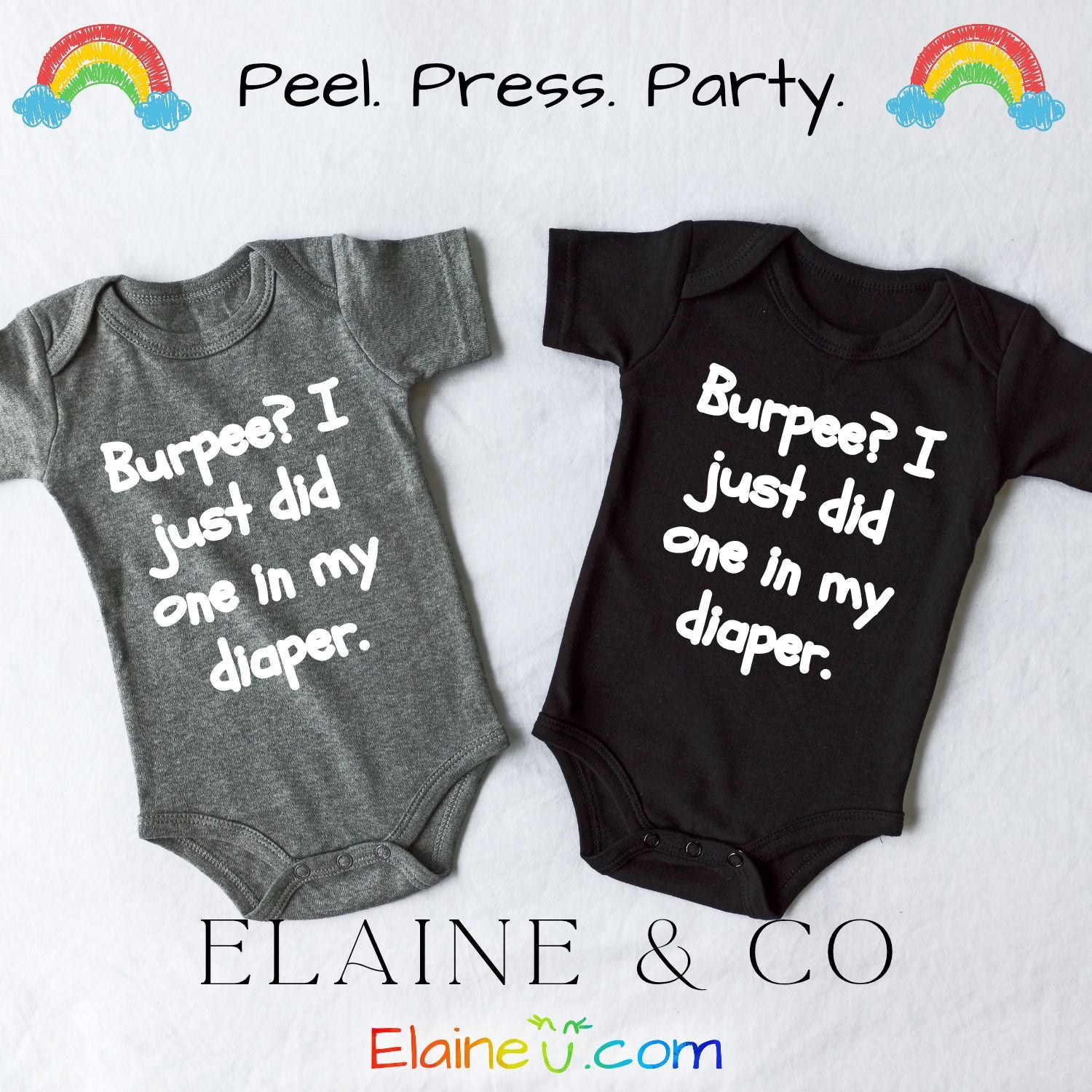 Iron-On Vinyl Decal – Burpee? I Just Did One in My Diaper (Baby Onesie Transfer), EU-I-3